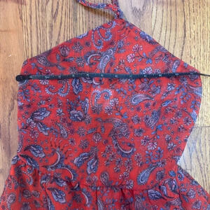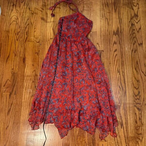 NWT MISA Los Angeles Red and Blue Midi Halter Hankerchief Dress Women Size XS