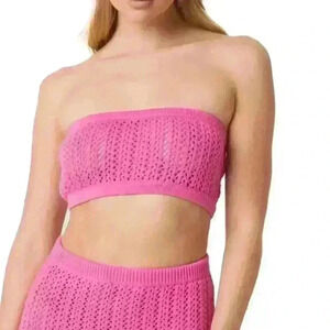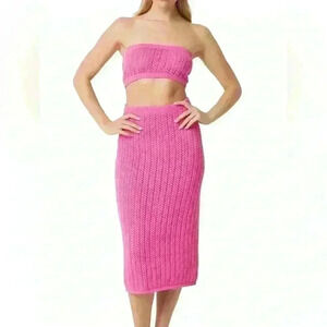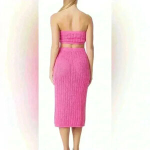 NWT MISA Los Angeles Tia Top & Flamingo Midi Skirt in Pink Crochet 2 piece set
