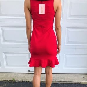 Elegant, red, high neck, ruffle dress. Perfect for cocktail / formal dress or a nice date night.