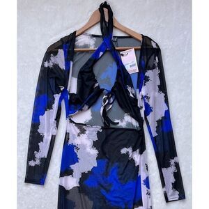 NWT MISSGUIDED Wrap Front Midaxi Long Sleeve Mesh Tie Dye Dress, Size 10