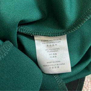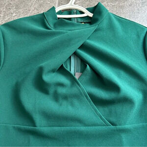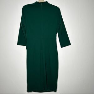Never worn emerald green midi pencil dress. 3/4 sleeves, keyhole bust, back zip, side ruching. Dress is photographing as a teal color. This is an emerald green closest to first two images.