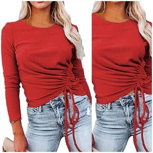 NWT MIXED THREADS Ribbed Long sleeve Crewneck Cinched Detail LARGE