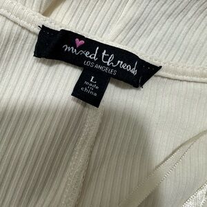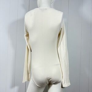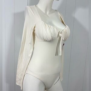 NWT MIXED THREADS Sz L Women’s Sexy Scoop Neck Long Sleeve bodysuit Beige Ribbed