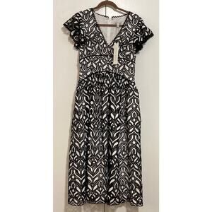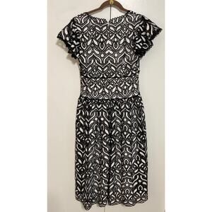 NWT ML Monique Lhuillier Embroidered Lace V-Neck Midi Dress Size 4