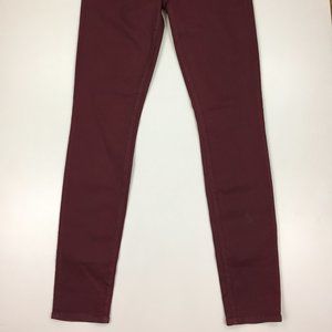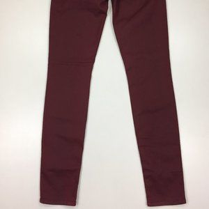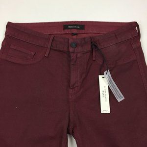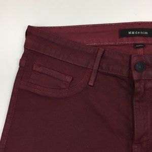 NWT MM DENIM Dark Red Glittery TATE Mid-Rise Logo Hardware Slim Fit Skinny Jeans