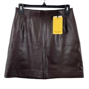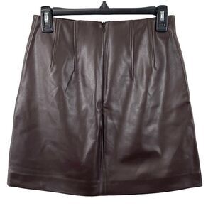 NWT M.M. Lafleur The Whitney Brown Vegan Faux Leather A-Line Mini Skirt Size 2