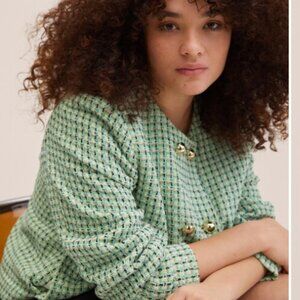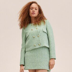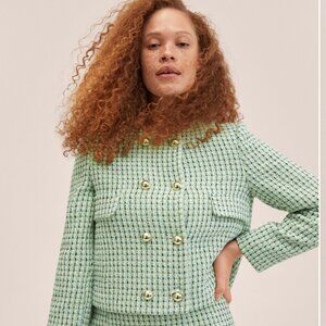 NWT MNG Double-breasted tweed jacket Green Medium