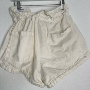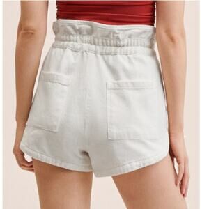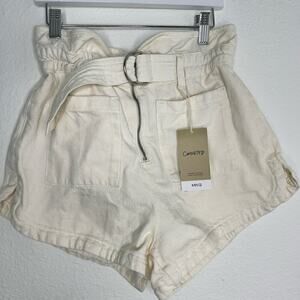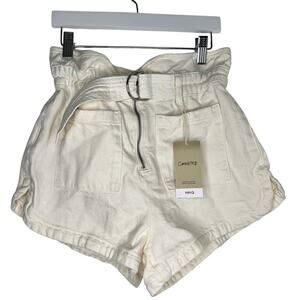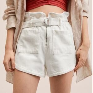 NWT MNG Emily Denim High Rise Belted Paperbag Shorts White Women's Size Small