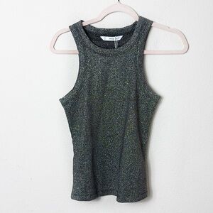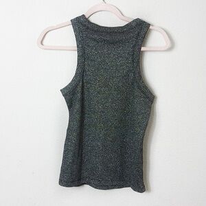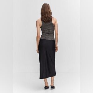 Lurex fabric. Fitted design. Halter neck. Wide straps.