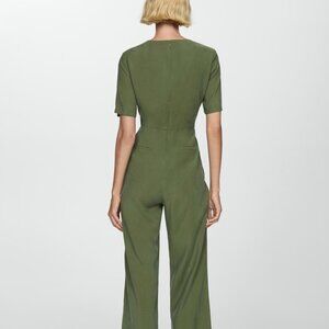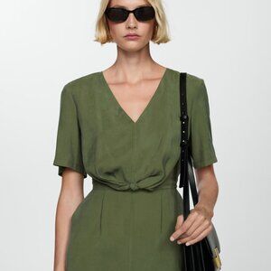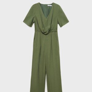 NWT MNG Mango olive green knotted modal jumpsuit. This such a cute jumpsuit with the knotted detail in the front. V neck with zipper closure in back. Made of modal and has such a soft feel to it. Perfefct jumpsuit for all year long. Pair with a sweater or jacket for the cooler months. This is a straight leg, longer style jumpsuit. New with tags, size large.