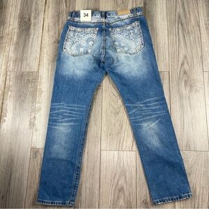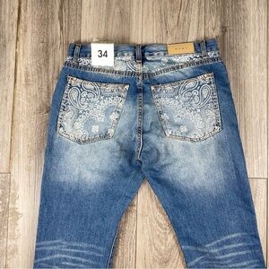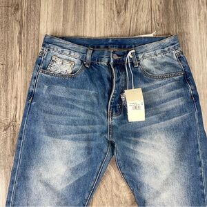 NWT MNML denim Paisley patch fading button fly size 34 men’s jeans