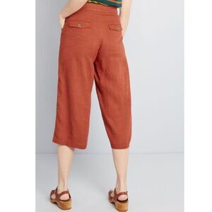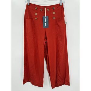 NWT MODCLOTH Gone Sailing Red Orange Linen Wide Leg Cropped Side Zip Pants Sz 2