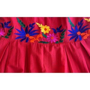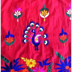 NWT MOMO New York Neli Red Peacock Embroidered Kaftan Dress 100% Cotton Size S