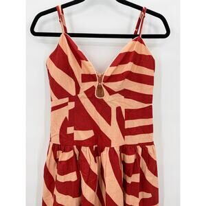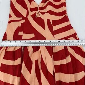 NWT MON RENN Surreal Tropico Print Cotton Midi Dress Red/Coral Size SMALL