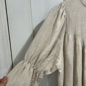 New with tags MONBEBE Rea Women's Linen Minimalist Prairie Neutral Midi Maxi Shift Dress