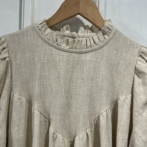 NWT MONBEBE Rea Women's Linen Minimalist Prairie Neutral Midi Maxi Shift Dress