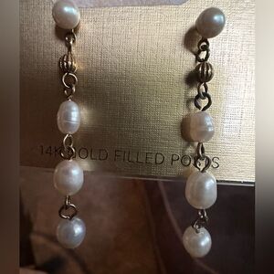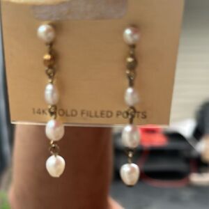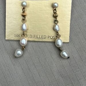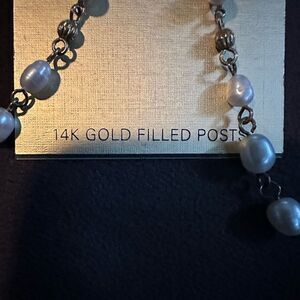 NWT MONET 14K Gold filled Post dangle fresh water pearls shell and Gold earrings