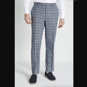 NWT MOSS BROS LONDON Tailored Fit Mid Blue Check Trouser 30R 30