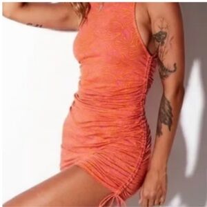 NWT MOTEL Ardilla Dress in Trippy Waves Print in Tangerine Pink Color