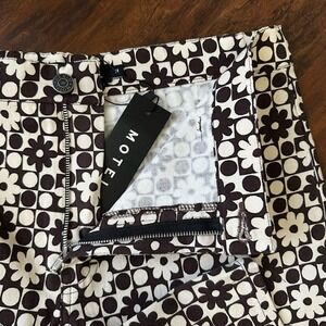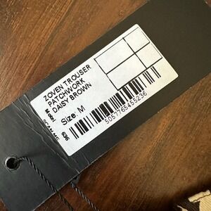 Elevate your wardrobe with these stylish and versatile pants from Motel Rocks. This pair features a unique patchwork daisy pattern in shades of brown, perfect for pairing with a variety of tops for any occasion. The pants have a high rise and flared leg style, adding a touch of retro flair to your outfit. Crafted from a comfortable and stretchy blend of cotton and elastane, these pants are easy to care for with a hand wash only recommendation. The flat front and waist size of 29 inches provide a flattering and comfortable fit for women in size M. The pants also come with a zipper and button closure and are perfect for travel or casual wear.