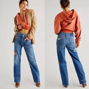 NWT MOTHER Denim The Rambler Sneak Embroidered High Waist Straight Leg Jeans