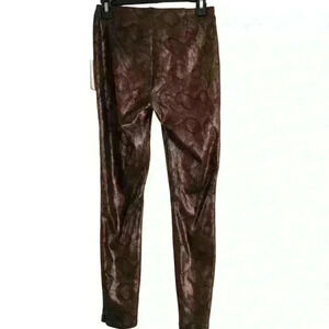 Scaly texture and a coppery snake print gives these supersleek pants a bold, trend-forward look.