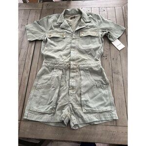 NWT NEW MOTHER Short Sleeve Curbside Utility Romper Spoiler Alert Army Green Size Small