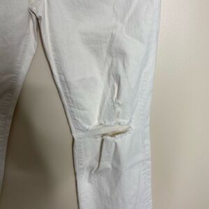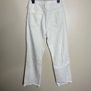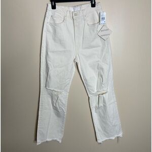 Super high-waisted wide-leg jeans with a loose fit, slightly dropped crotch, 32-inch inseam and a frayed hem. Cut from a SUPERIOR cotton blend with a touch of stretch, Unnatural Acts is a creamy white hue with distressed details and tears at the knees.