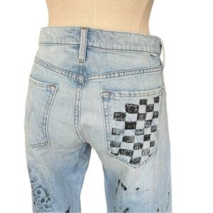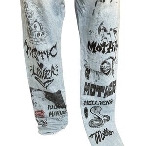 NWT MOTHER The Chaser Jeans in Bloodshot Eyes Wash. Tattoo rock and roll metal graphic print.