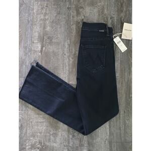 NWT MOTHER The Hustler Black Ankle Fray Jeans - 23 waist