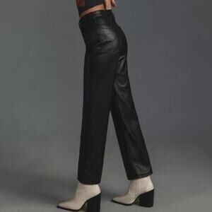 NWT MOTHER The Rambler Zip Ankle Faux Leather Pants Black Size 33