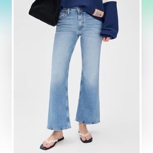 Runs true to size. Those between sizes should size down, Intended for a high-rise, bootcut-leg silhouette. Stretch denim has a mid-weight feel.