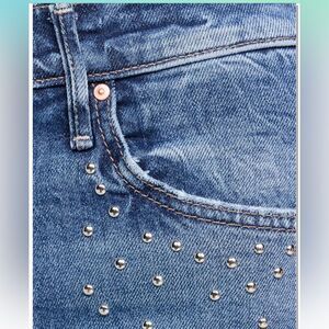 Stylish straight leg jeans. Classic blue denim. Subtle embellishments on the front.