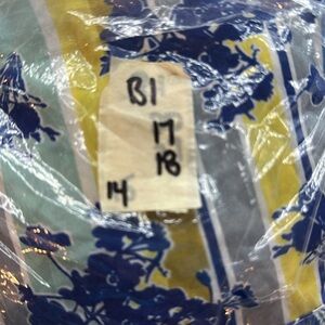 NWT, MPH Collection Button down top, Collar, Gold Buttons, XL, Rolled Sleeves, Slits in hem, Navy Blue Flowers, Stripes
