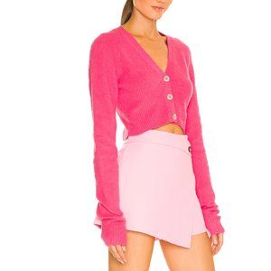 asymmetric-wrap skort from MSGM featuring bubblegum pink, wrap design, side button fastening, asymmetric design and skort design.
