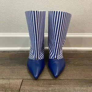 NWT MSGM Pumps Heels Pointed Toe Leather Striped Denim Blue White $770 Size 37