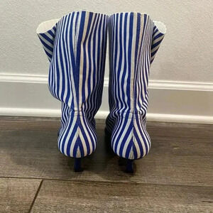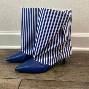 NWT MSGM Pumps Heels Pointed Toe Leather Striped Denim Blue White $770 Size 37 Kitten heel Pointed toe Pull on Fold Over Low heel Brand new with tags Please review all photos. Comment with any questions.