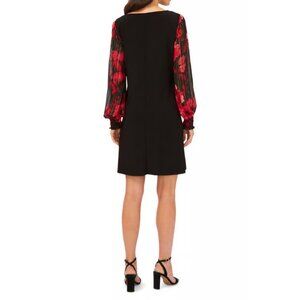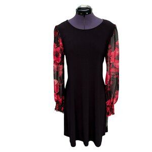 NWT MSK Black Dress With Floral Sheer Blouson Sleeves Size M
