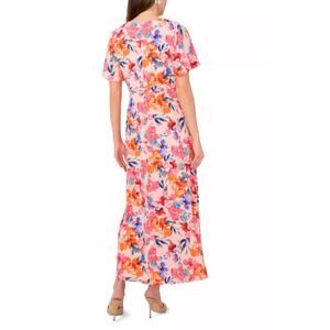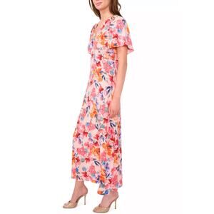 NWT MSK Flutter Sleeve V-Neck Multi Floral Print Chiffon Dress