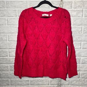 Bring some statement-making color to your seasonal dressing with this pointelle sweater