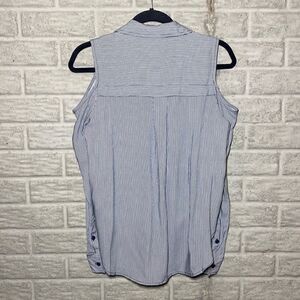 Stay on-trend this season in this cold shoulder button-up stripe shirt. - Spread collar - Long cold shoulder sleeves with button cuffs - Front button closure - Stripe print Imported