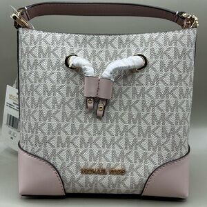 NWT MSRP $398 MICHAEL Michael Kors Mercer Small Logo Bucket Bag PWD BLSH MLT
