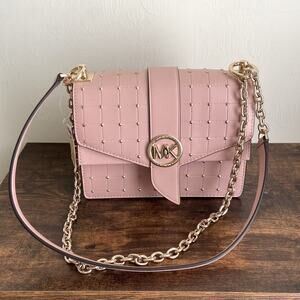 NWT MSRP$ 398 Michael Kors Pink Quilted Greenwich Small Studded Crossbody Bag