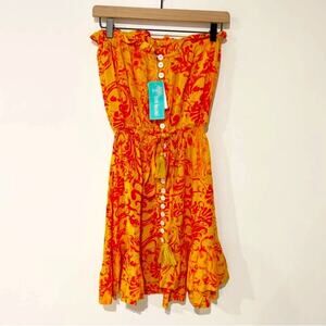 NWT MSRP$110 Tiare Hawaii Ryden Revolve Mini Dress in Batik Bloom Saffron Red OS