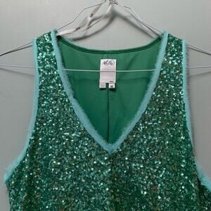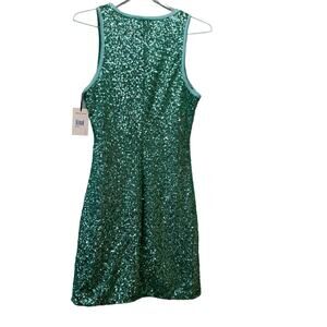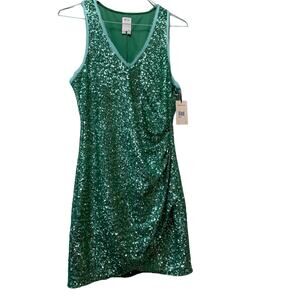 NWT MSRP$298 Ali Ro Mint Leaf Green Sequin Drape-Front Mini Dress Size Medium