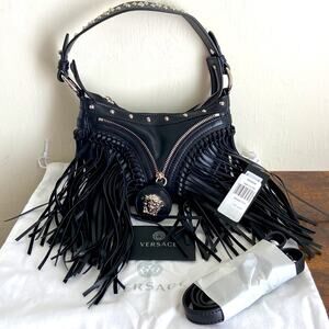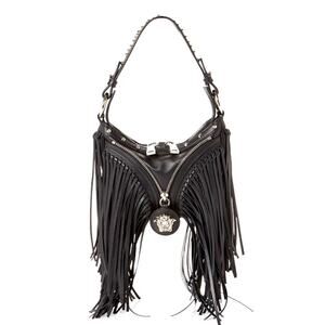 NWT MSRP$4875 Versace Medusa Mini Fringed Leather Hobo Shoulder Bag