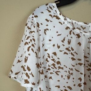 NWT MTS Angela Ivory/Dark Caramel Abstract Print Short Sleeve Pullover Top