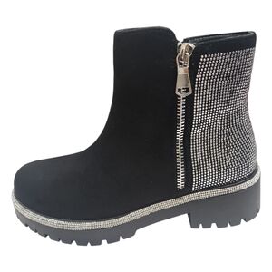 🔥 NWT MUST-HAVE! Black Suede Combat Boots w/ Sparkling Rhinestones | Size 6