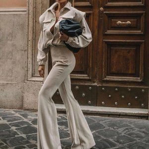 ribbed velvet jacket featuring classic collar, tone on tone buttons, long sleeves with flap on shoulders and flap pockets on the chest.