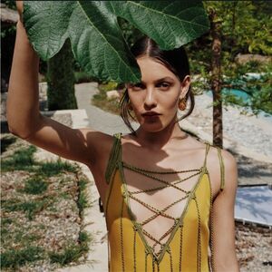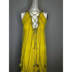 NWT My Beachy Front Tassel Tie Midi Dress Yellow Small $515